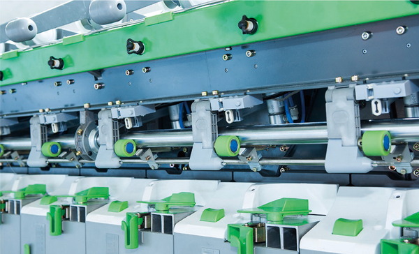 采用步進(jìn)電機(jī)單獨(dú)喂棉,結(jié)合專(zhuān)業(yè)的電腦軟件參數(shù)設(shè)計(jì),實(shí)現(xiàn)接頭分段控制。提高了接頭質(zhì)量和成功率。配備氣圈補(bǔ)償器,接頭時(shí),負(fù)壓氣圈補(bǔ)償器會(huì)立刻儲(chǔ)存引紗羅拉帶來(lái)的盈余紗線。這能確保后道加工中的高質(zhì)量卷裝和更好的退繞。即使在最高速度時(shí)進(jìn)行接頭,也能確保完美的卷裝質(zhì)量。采用氣動(dòng)自動(dòng)抬臂裝置,斷頭自動(dòng)抬起,簡(jiǎn)單可靠氣氣管布置簡(jiǎn)單維護(hù)方便。接頭操作智能控制,檔車(chē)工整備好合適的紗頭并將它放入引紗管,合上紡紗箱后接頭自動(dòng)完成。具有回退、變速喂棉、毫秒級(jí)時(shí)間控制,接頭質(zhì)量好,操作簡(jiǎn)單,保證了穩(wěn)定的接頭成功率和接頭質(zhì)量。