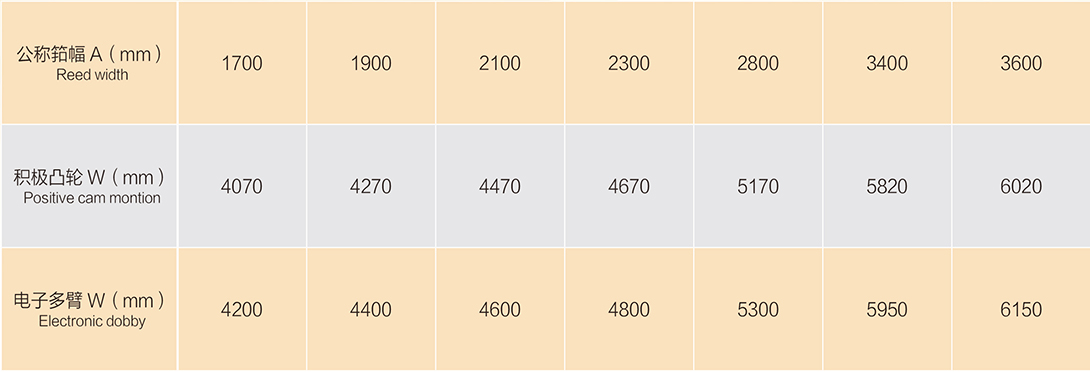 該機(jī)采用模塊組合式設(shè)計(jì)概念,高剛性的機(jī)架,加寬的箱型墻板,獨(dú)特的打緯平衡機(jī)構(gòu),精確的引緯控制技術(shù),造就一款高速、低振動(dòng)、節(jié)能和智能化的新型噴氣織機(jī)。